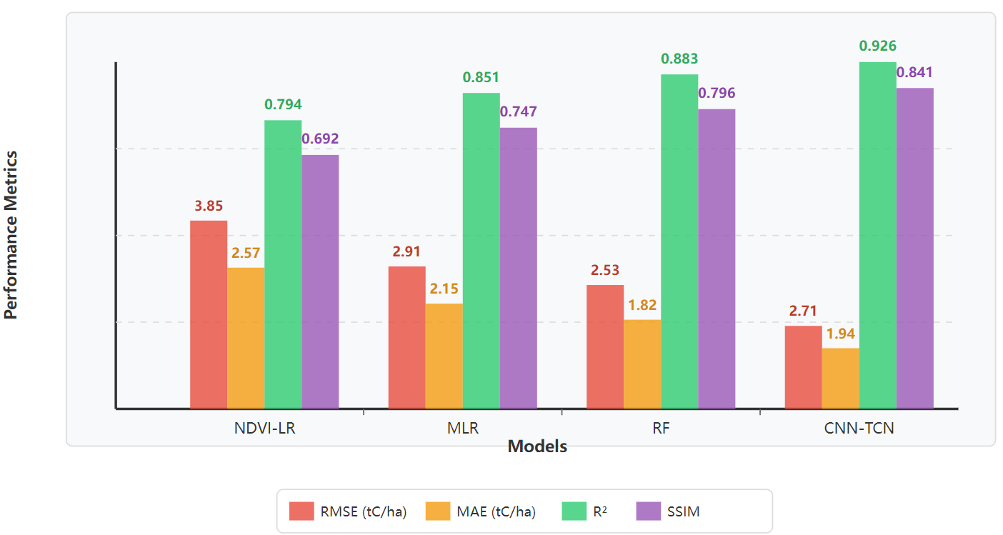 As urban carbon neutrality initiatives accelerate, green spaces in cities are playing an increasingly critical role as natural carbon sinks in mitigating greenhouse gas emissions. However, conventional carbon estimation approaches struggle with spatial fragmentation and temporal variability in urban green areas, resulting in limited accuracy and poor adaptability. To address this challenge, this study proposes a deep spatiotemporal modeling framework combining Convolutional Neural Networks (CNN) and Temporal Convolutional Networks (TCN), integrating multi-source remote sensing data from Landsat-8, Sentinel-2, and MODIS to estimate carbon storage in Guangzhou’s green spaces from 2018 to 2023. Experimental results demonstrate that the model achieves robust performance across diverse land types and seasonal conditions, with an overall RMSE of 2.71 tC/ha, R² of 0.926, and SSIM of 0.841, significantly outperforming traditional statistical and machine learning methods. The study confirms the effectiveness of deep fusion modeling in urban carbon sink estimation and offers a scalable technical pathway to support carbon asset management, green space planning, and low-carbon policy development in complex urban contexts.