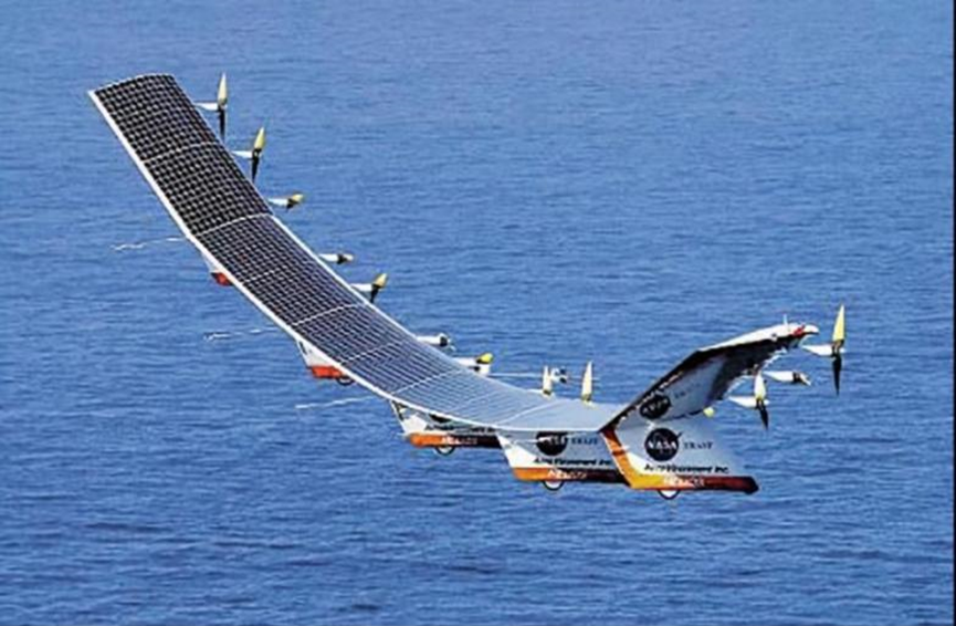 Due to the relatively low energy density of the battery, a large number of solar panels are needed to convert solar energy to ensure a sufficient power supply for the flight. This explains why today's solar planes usually adopt a layout with a long wing width and many electric motors. The long width of the wing offers enough space to install a large number of solar panels and allows the batteries to be charged continuously during the flight. On the other hand, multi-engines distribute energy demand and allow airplanes to maintain flight efficiency by depending on the solar panel power supply and battery energy storage [28]. As shown in Figure 10, the "Sun God" solar-powered unmanned aircraft of the United States employs this technology.
