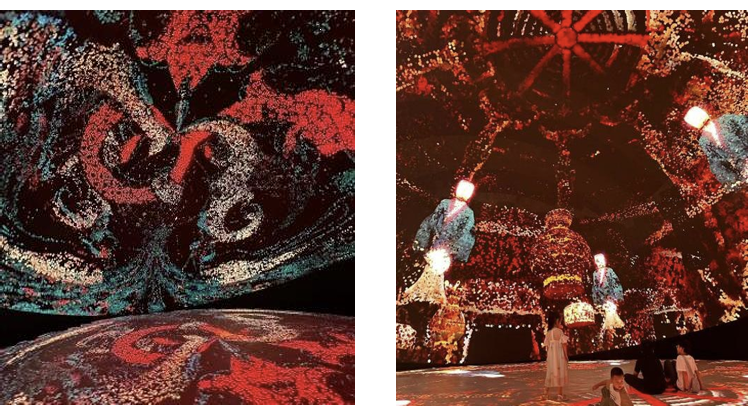 Immersive experience has made digital media art one of the most effective means of engaging human senses. Through the combination of multi-sensory elements such as light and shadow, sound, and space, digital media can provide the audience with a panoramic sensory experience. Elements such as light and shadow, music, and spatial layout are combined not only to allow the audience to perceive culture through vision but also to interact with culture through sensory levels such as sound and perception. In the "Mawangdui Han Dynasty Cultural Immersive Exhibition", digital light and shadow effects and spatial design were used; the display of colors and dynamic particles not only provided the audience with visual effects (see Fig. 6) but also, combined with supporting sound effects, allowed the audience to perceive the promotion of "Han" dynasty culture through both vision and hearing. This enabled the audience to "touch" the pulse of life spanning thousands of years—every gaze became a dialogue across time and space, every exploration a profound understanding of Han dynasty culture, and every moment an experience of the magnificent tranquility of the circulation of life.