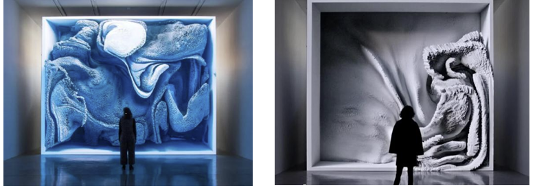 As a discipline that studies symbols and their meanings, semiotics is widely applied in digital media. In traditional symbols, they are abstracted into particle elements (such as points, tiny graphics, and short lines); from a semiotic perspective, these particles can be endowed with specific meanings and serve as the minimal constituent units of symbols. In digital media expression, strengthening particle elements for abstract expression can construct richer, more in-depth narrative visuals and unique perspectives. As the basic constituent units of digital art and real media (e.g., LEDs), particle elements can act as symbols with "signifiers" (forms) and "signifieds" (meanings), conveying specific cultural or emotional information through their dynamic performance and interactive characteristics. Particle elements can convey specific emotions and drive the atmosphere of a scene through their visual expressions such as form, movement, and color. They can also form complex symbol systems through arrangement and combination to realize the transmission of recognizable information for representation. Through the collective movement of particle elements, the symbolic expression of conceptual elements at the internal conscious level—such as nature, life, and group behavior—can be achieved, leaving sufficient space for the audience’s emotional divergence. Different particle forms, quantities, and arrangement methods can all be part of the symbol system, carrying specific meanings. Take the digital works of the artist Refik Anadol as an example: his works consist of LED media walls and CNC-machined foam. He combines paintbrushes with AI algorithms, using paint as big data and the canvas as architectural space to present the operating mechanism of the human brain to visitors (see Fig. 2).
