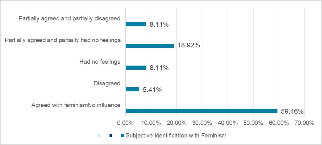 Next, the question about feminism's influence shows that only 10.81% of the respondents believe that the feminist trend has no influence on them. This group may be in a relatively closed information environment or have a low sensitivity to social trends, with less exposure and consideration of content and issues related to feminism.