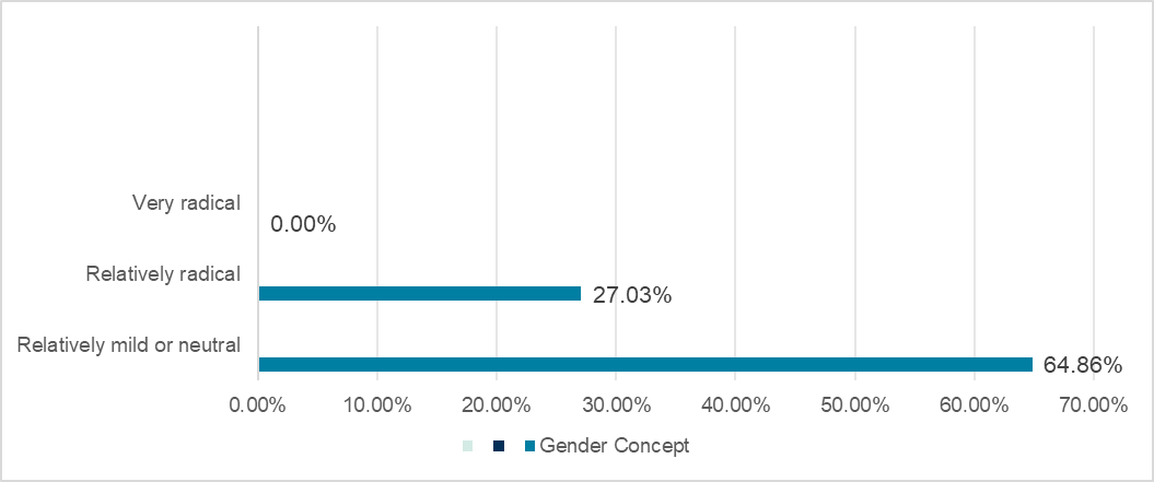 No one chose "very radical", which may reflect that among the respondents in this survey, extremely radical gender concepts are not common.