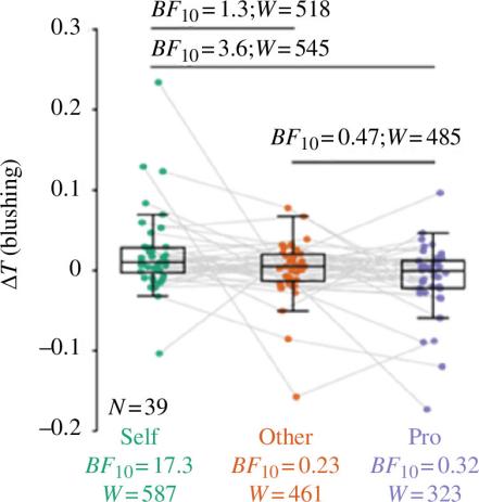 The topic, followed by blushing, is related to higher-order social cognition is a problem. This is a worthy topic to research. To uncover the neural activity linked to blushing, while also shedding light on the mental processes that underpin this physiological response and the mechanisms that contribute to the formation of self-awareness. This study explored the neural basis of blushing. Participants viewed pre-recorded videos of themselves singing karaoke inside an MRI scanner, while videos of others served as controls. Cheek temperature, used as a physiological indicator of blushing, and brain activity were recorded concurrently through fMRI. Sixty-three individuals were recruited, and after excluding data errors, 49 valid datasets remained, including 40 participants who completed MRI scanning. Each participant watched both their own and others’ singing performances, enabling direct comparison across conditions. Results revealed that facial flushing was most pronounced when participants observed their own recordings. This condition was associated with stronger activation in the cerebellar lobule V, left paracentral lobule, and early visual cortex, indicating faster sensory processing. Overall, the findings suggest a clear link between blushing and the engagement of neural systems involved in emotion regulation. Moreover, the results imply that the occurrence of blushing does not necessarily depend on complex social-cognitive mechanisms, but may instead arise from more fundamental sensorimotor and affective processes.