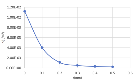 As shown in Table 1, when the inner radius of the annular electrode is gradually increased starting from 0.05mm, the maximum charge density decreases significantly. The rate of decrease in the maximum charge density gradually slows down. When the inner radius is equal to 0.25mm, the value of the maximum charge density is the smallest. If the inner radius of the electrode is further increased, a negative charge density will be found, and its absolute value will continuously decrease as the inner radius of the electrode increases. In addition, with the appearance of negative charge, the maximum positive charge density begins to rise with the increase of the inner radius.