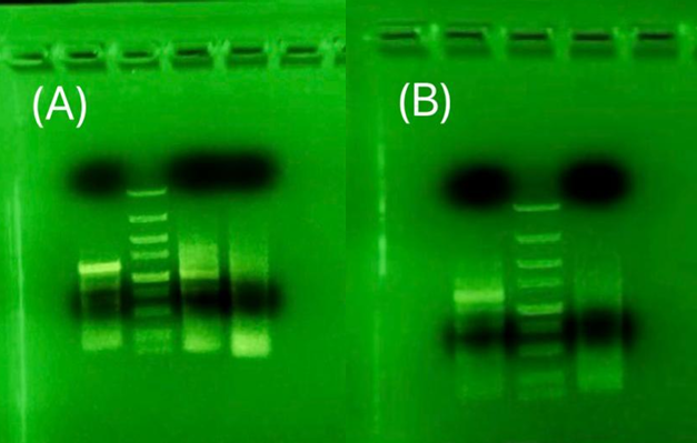 The variable that changed among the sample used in two gel-electrophoresis shown in Figure 9 is the annealing temperature and the amount of template. The annealing temperature had been increased to the lowest Tm of the primer part without overhang. The temperature was increased to increase specificity. There are obvious signals shown around 1300bp for NRT and NR. The length does not match the target gene length, but this discrepancy may be due to splicing that changes the expressed sequence. This sample was sent to the test sequence, but the result showed no similarity between the tested sample and the target gene.