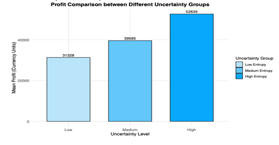 As shown in Figure 1, the profit comparison of different uncertainty groups indicates that the average profit of the high-entropy group (the top 20% of uncertain customers) is significantly higher than that of the low-entropy group (the bottom 20% of uncertain customers). This result further confirms the role of behavioral uncertainty in differentiating customer value. Customers with high uncertainty exhibit higher profit potential, which is consistent with the deep patterns captured by our entropy index.