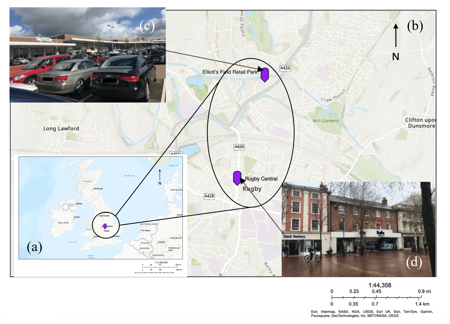 Understanding contemporary retail behaviour is crucial for urban planning and commercial strategy, especially amid evolving consumer habits and post-pandemic challenges. This study investigated how retail behaviours in a medium-sized UK town align with the predictions of Central Place Theory. Using Rugby as a case study, two contrasting retail formats were compared: Elliott’s Field, an out-of-town retail park, and Rugby Central, a town-centre shopping mall. Primary data were collected through footfall counts and structured questionnaires, complemented by GIS-based mapping of service distributions and spheres of influence. The results showed that Elliott’s Field has higher footfall and a greater share of high-order services, while Rugby Central offers a broader range of middle- and low-order shops but suffers from higher vacancies. Spatial analysis indicated that Rugby Central retains a wider sphere of influence, though anomalies distort this pattern. Spearman’s Rank correlation revealed no significant relationship between distance travelled and frequency of visits at Elliott’s Field, but a weak yet statistically significant negative correlation at Rugby Central. These findings highlighted both the utility and limitations of Central Place Theory in explaining contemporary retail behaviour. The research contributed empirical evidence from a medium-sized town context, offering insights for urban planning and retail resilience in the post-pandemic era.