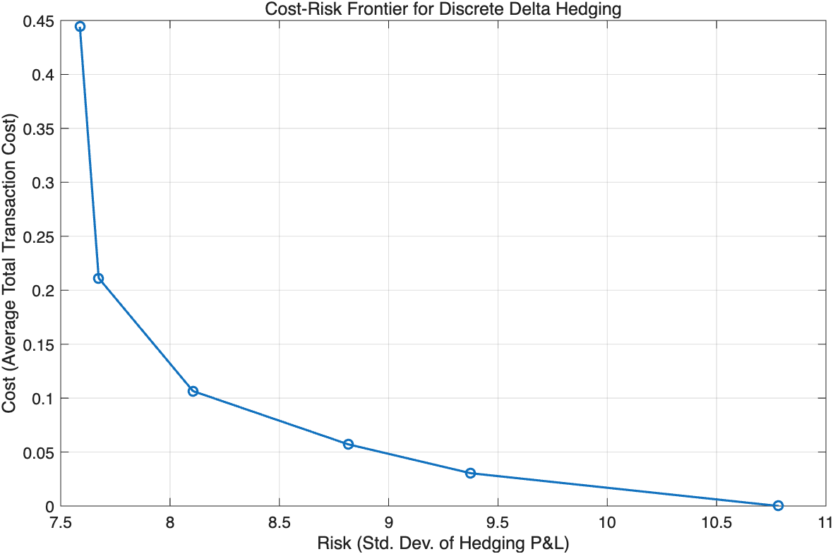 Delta hedging is a fundamental strategy in options risk management, relying on continuous adjustment of a replicating portfolio to eliminate risk. However, real markets exhibit features such as stochastic volatility and jumps that violate the assumptions of the Black–Scholes model, rendering perfect replication impossible and the market incomplete. In such cases, hedging can only reduce risk at best, and frequent rebalancing incurs significant transaction costs. This article investigates discrete delta hedging under stochastic volatility and jump-diffusion dynamics, quantifying the trade-off between hedging cost and risk reduction via Monte Carlo simulation. We construct a cost–risk frontier, analogous to an efficient frontier, that shows the minimal achievable risk for a given cost (and vice versa). The results demonstrate that increasing the hedge frequency (trading more often) generally lowers the variance of hedging errors but at a rapidly diminishing rate and with higher accumulated costs. Even with very frequent rebalancing, a residual risk remains due to jumps and unhedgeable volatility fluctuations. We discuss how this frontier can inform optimal hedging policies, balancing transaction costs against risk appetite, and we compare our findings with prior theoretical and empirical studies.