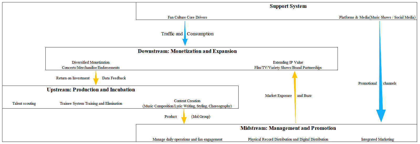 From “Korean Wave” to a worldwide wave, the cultural industry has gradually become the most important soft power and economic engine in the Republic of Korea. In the cultural industry, music industry is the most important industry that exports Korean culture to other countries. By analyzing Korea’s music industry chain and exporting model—industrialized and systematized export model, and analyzing the reasons why Korean music industry can be successfully exported to all over the world, it has important research value and reference value for exporting China’s music industry and internationalization. It is worthy of the deep research and discussion. This paper will analyze the export model of Korea’s music industry chain by its own experience. Try to summarize the experience of Korea’s successful experience in exporting its music industry to all over the world. Based on the current situation of China’s music industry, combining with the situation of the implementation, this paper puts forward several feasible and constructive suggestions for the own export model. It is hoped that this paper can provide some references for the export of China’s music industry and professionals to promote the internationalization of Chinese music.