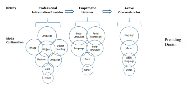 2.In each higher-level action, what modal resources did the presiding doctor and primary decision-making family member use? What were their "modal configurations" (hierarchical structures of the importance of each modality) and “modal densities”?