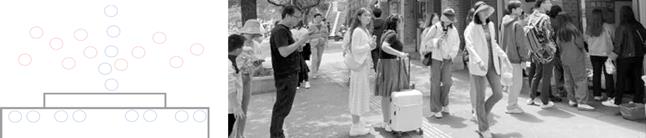 The second type is vertical blockage. When crowds gather at the entrance of a shop to wait for their turn, it can affect the flow of people entering and exiting the shop, reducing the consumer experience, as shown in Figure 3.