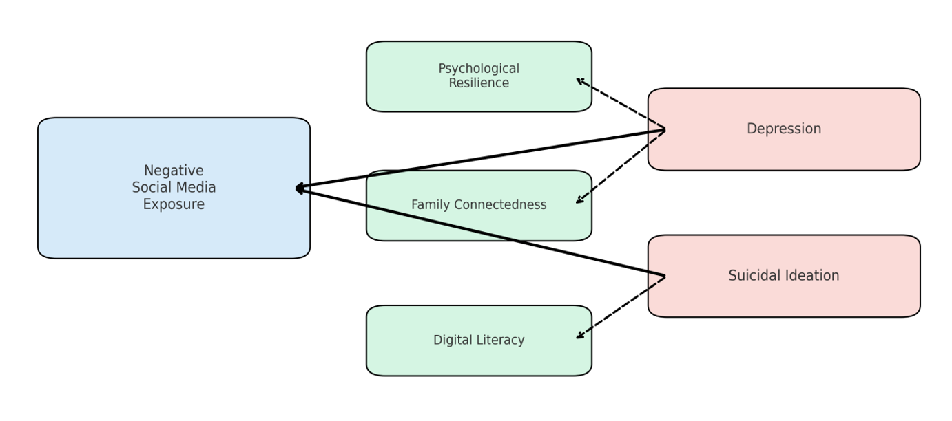 This study examines the psychological impact of negative social media exposure on Chinese adolescents, with particular attention to the moderating roles of psychological resilience, family connectedness, and digital literacy. Grounded in Ecological Systems Theory, a cross-sectional survey was administered to 500 high school students using validated psychometric instruments to assess levels of exposure, mental health outcomes, and protective factors. The findings indicate that frequent exposure to harmful online content significantly predicted higher levels of depression and suicidal ideation, underscoring the risks posed by digital environments. Psychological resilience emerged as a significant moderator, weakening the relationship between negative exposure and psychological distress, thereby suggesting its potential as a protective resource. In contrast, family connectedness and digital literacy did not significantly buffer these effects, pointing to cultural and contextual variations in protective mechanisms. These results emphasize the need for resilience-based interventions and further culturally sensitive research on adolescent digital well-being in non-Western societies.