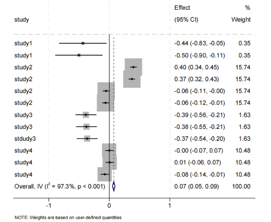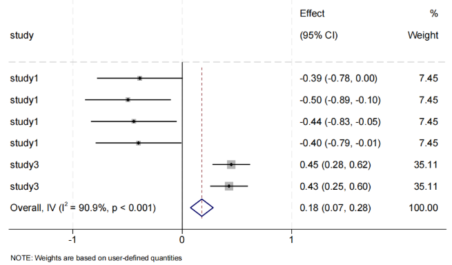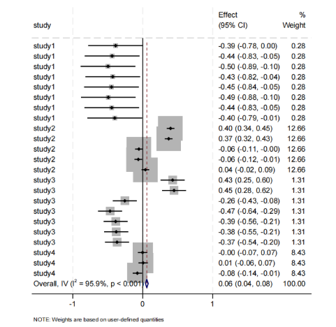 We divided the intestinal flora into different subgroups by the phylum to which they belonged and analyzed them together and separately. Statistical tests were performed using stata18.0, and the correlation coefficient and 95% of each study were used as effect indicators. Heterogeneity was assessed by fisher z-test with test level α = 0.1, and the heterogeneity was assessed by I2. If there was no heterogeneity among studies (P ≥ 0. 1, I2 ≤ 50% ), a fixed-effects model was used for the merger, and if there was statistically significant heterogeneity among studies (P < 0. 1, I2 > 50% ), a random-effects model was used.