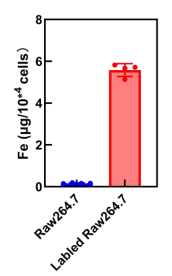 ICP-MS was used to provide accurate quantitative analysis of iron ion levels in RAW 264.7 cells. As shown in Figure 7, the iron concentration (≈6 µg/104 cells) for RAW264.7 cells labeled by FePM was significantly higher than those without labeling (≈0).