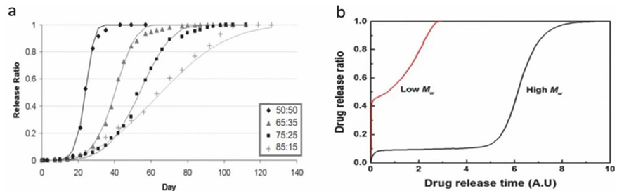 Poly Lactic-co-Glycolic Acid, PLGA, one kind of synthetic 3D bio-ink. The physical and chemical properties of PLGA are mainly dependent on the structure of the polymer chain--the ratio of Lactic acid (LA) and Glycolic acid (GA) in the chain. The figure below illustrates how the Ratio of GA and LA in the polymer chain will influence the properties.