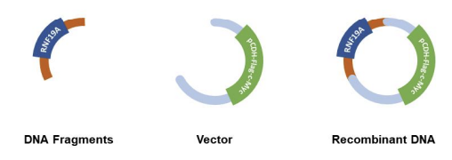 To construct the RNF19A-overexpressing vector, the RNF19A gene was cloned into the pCDH-Flag-c-Myc vector. Primer pairs were designed according to the guidelines provided by the ClonExpress MultiS One Step Cloning Kit (C113-01, Vazyme). The pCDH-Flag-c-Myc vector was linearized using the restriction enzymes EcoRI (ER0271, ThermoFisher Scientific) and BamHI (ER0055, ThermoFisher Scientific). The PCR-amplified RNF19A gene was then ligated with the linearized vector to form the recombinant pCDH-Flag-c-Myc-RNF19A. The recombinant plasmid was transformed into DH5α competent bacteria for amplification, followed by plasmid extraction for further use as shown in Figure 1.
