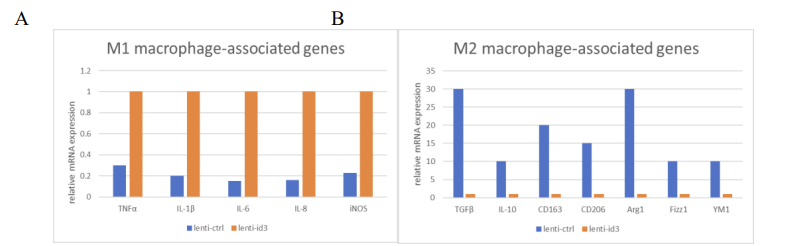 The signal levels of lenti-id3l:m1 type macrophages were much higher than those of lenti-ctrl group. (Fig.7A) On the other hand, the levels of lenti-id3:m2 type macrophages were much lower than those of lenti-ctrl group. (Fig.7B)