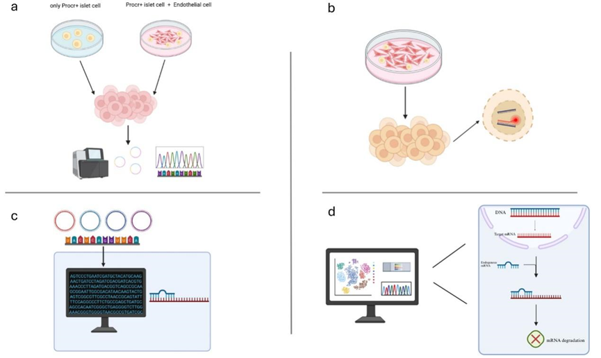 Diabetes mellitus is a chronic metabolic disorder characterized by impaired insulin secretion or insulin resistance, and current therapeutic approaches are unable to achieve complete remission. Recent studies have demonstrated that Procr⁺ islet cells within murine islets can form colonies and differentiate into islet organoids through co-culture with endothelial cells, subsequently reversing diabetes upon transplantation. However, the underlying mechanism by which endothelial cells promote the growth of Procr⁺ islet cells remain incompletely understood. This study aims to investigate circular RNA (circRNA) within the extracellular vesicles (EVs) of endothelial cells as a potential breakthrough. This investigation seeks to elucidate the role of circCARD6, derived from endothelial cells, in promoting the colony formation of Procr⁺ cells. I hypothesize that circCARD6 is selectively encapsulated into EVs, subsequently transferred into Procr⁺ cells, and functions as a microRNA (miRNA) sponge to modulate the expression of downstream genes, thereby enhancing cellular proliferation and differentiation. To validate this hypothesis, I employed co-culture of Procr⁺ cells and endothelial cells (ECs), followed by circRNA sequencing (RNA-seq) to identify differentially expressed circRNAs. I will employ fluorescence in situ hybridization (FISH) using BSJ-specific probes to confirm the transfer of circCARD6 from EC-derived EVs to Procr⁺ cells. Furthermore, I will use biotin-labeled miRNA pull-down assays and functional over-expression experiments to verify the sponge activity of circCARD6 on miR-31 and miR-29b-3p, as well as its impact on downstream protein expression and colony formation capacity. I expect proving that circCARD6 serves as a critical EV-derived circRNA that promotes colony formation and differentiation of Procr⁺ cells by acting as a miRNA sponge. This study provides novel insights into the mechanism of circRNA-mediated intercellular communication and identifies circCARD6 as a potential molecular target for enhancing islet regeneration. Our research findings may contribute to the development of novel therapeutic strategies for diabetes management.