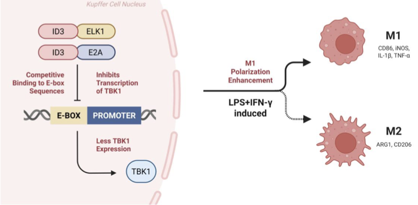 Cancer is a globally significant disease, which caused 9.7 million related deaths worldwide in 2022 alone. The tumor microenvironment (TME) represents a major barrier to effective cancer treatment, as it can promote tumor immune evasion and reduce the efficacy of anticancer therapies. Macrophage polarization is also a key determinant of tumor progression: by modulating the shift of macrophages between the M1 and M2 phenotypes, the body can modulate anti-tumor functions. This study aims to elucidate how the ID3–E2A/ELK1 complex modulates TBK1 expression to drive M1 macrophage polarization. We propose that this complex binds the TBK1 promoter, repressing its expression and subsequently promoting IRF5 activation, which shifts macrophages toward an M1 phenotype. Through genetic and functional assays, we propose to further explore how ID3-mediated TBK1 inhibition enhances phagocytosis and antitumor immunity. These insights may guide future development of macrophage-targeted immunotherapies for cancer treatment.